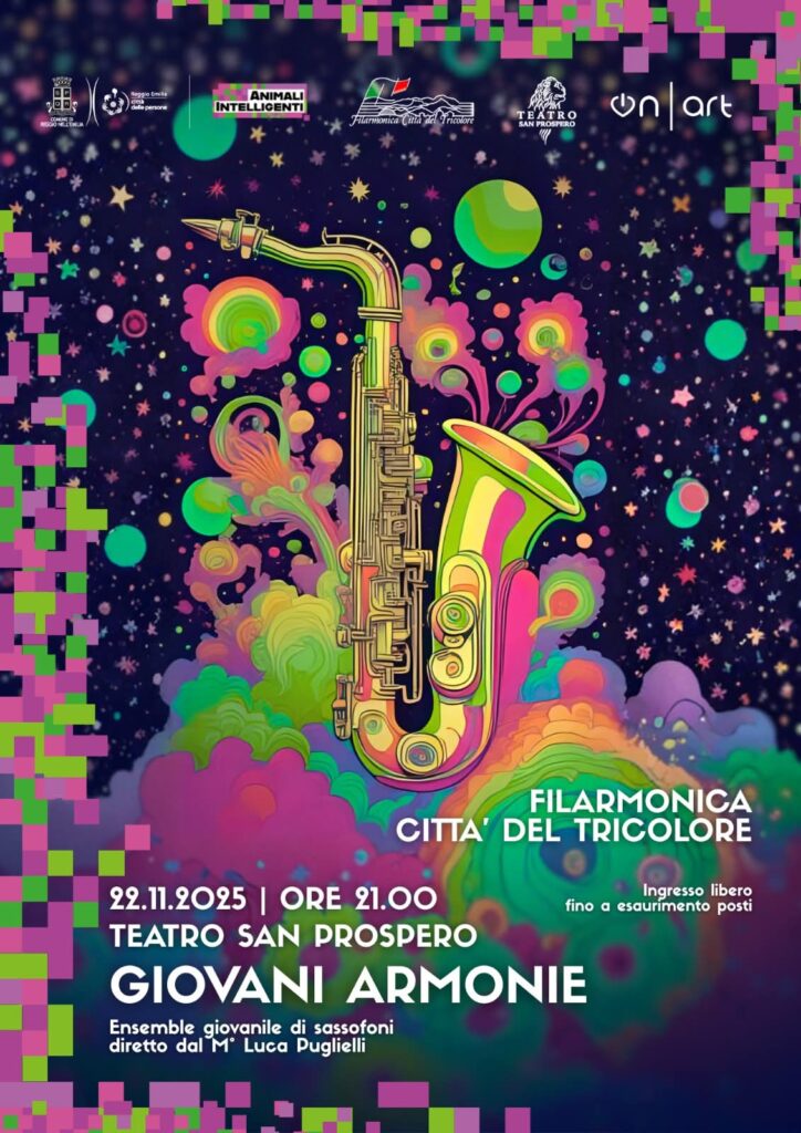 Uno degli appuntamenti di questa stagione arriva sabato 22 novembre 2025, alle ore 21:00, al Teatro San Prospero, realtà teatrale nel cuore del centro storico reggiano curata da ON ART. Sul palco salirà “Giovani Armonie”, l’ensemble giovanile di sassofoni della Filarmonica Città Tricolore, nato nelle aule del Conservatorio “Luisa D’Annunzio” di Pescara sotto la guida del M° Gaetano Di Bacco.